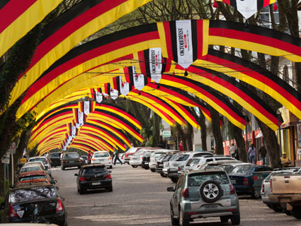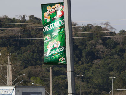 O clima de Oktoberfest já toma conta das ruas de Santa Cruz do Sul. Faltando pouco menos de um mês para o início da Festa da Alegria – que acontece de 2 a 13 de outubro – a rua Marechal Floriano já se encheu das clássicas bandeirinhas e ornamentações nos arcos postados junto ao túnel verde e nas calçadas. Os trevos da cidade também ganharam um colorido diferente, e as estruturas e obras dentro do Parque da Oktoberfest já começam a aparecer.