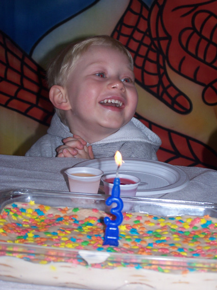 A alegria Felipe Heck na festa dos 3 aninhos