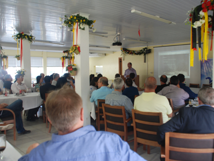 Nesta segunda-feira, 30, a Associação Santa Cruz Novos Rumos (Ascnor) e a Associação de Entidades Empresariais de Santa Cruz do Sul (Assemp) realizaram uma reunião-almoço para apresentação do andamento do projeto para desenvolvimento de uma Plataforma Logística em Santa Cruz do Sul, revitalização do Parque da Oktoberfest e construção do Centro de Eventos. O encontro ocorreu no Espaço Assemp, junto ao Parque da Oktoberfest, com a presença de lideranças das entidades, apoiadores e empresários.