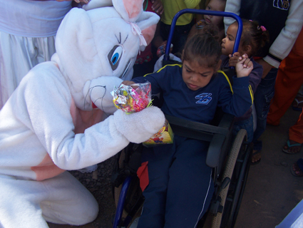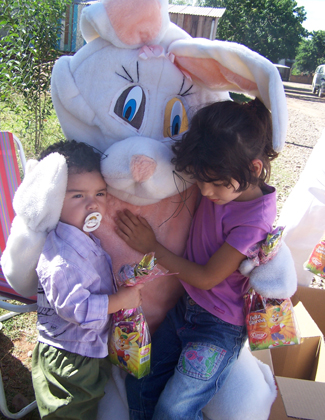 “Coelhinho da Páscoa que trazes pra mim? Um ovo, dois ovos, três ovos, assim!” Foi entoando a tradicional canção do Coelho da Páscoa que inúmeras crianças dos bairros de Santa Cruz do Sul receberam, na maior euforia, os integrantes da Associação de Apoio a Pessoas Carentes e Necessitadas de Santa Cruz do Sul na manhã de sábado, 7, quando foram distribuídos cerca de 1,3 mil ninhos.