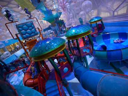 Águas-vivas penduradas no teto, bolhas de ar coloridas, algas marinhas, corais ou uma piscina de ondas são só exemplos dos elementos aquáticos que podemos encontrar no parque. Desenvolvido pela Forrec Ltd, ele inclui ainda luzes que são acionadas de noite, criando um mundo de fantasia que leva alguns visitantes a dizer que se sentem em um filme a três dimensões. Fonte: www.blogunimed.com.br