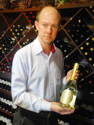 Elário Schulz, proprietário da Wein Haus, com uma garrafa da Nero Gold