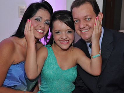 Amanda entre seus pais Marcia e Edivilson Brum