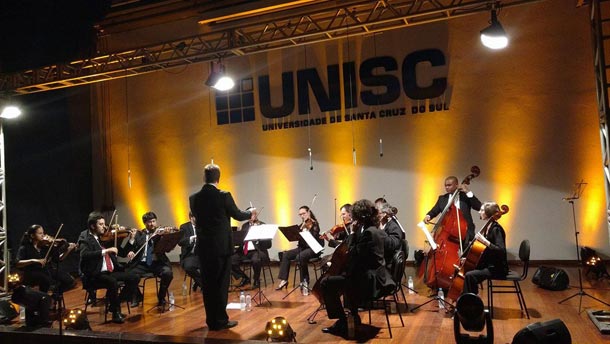 A Orquestra de Câmara da Universidade de Santa Cruz do Sul (Unisc) realiza concerto de outono nesta quarta-feira, dia 26 de abril. A apresentação ocorrerá no Auditório Central da instituição, a partir das 20h, com entrada franca. O repertório contará com Concerto de Brandemburgo N. 3 BWV 1048, de Sebastian Bach; Divertimento em Fá Maior K. 137, de Wolfgang Mozart; Adagio em Sol Menor-Albinoni, de Remo Giazotto; e Suíte Holberg, de Edvard Grieg. A regência será do maestro Leandro Schaefer.