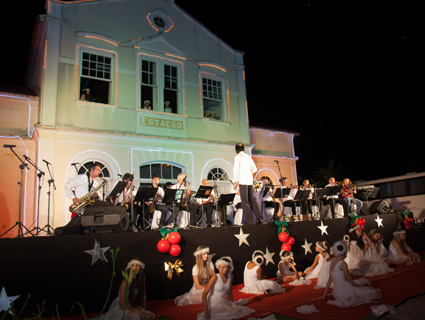 Com trombones, trompetes, sax, clarinetes e outros instrumentos, o show marcou uma nova atração cultural para a cidade. O projeto surgiu das oficinas de instrumentos de sopro ministradas na Secretaria Municipal de Educação e Cultura (Smec) este ano.