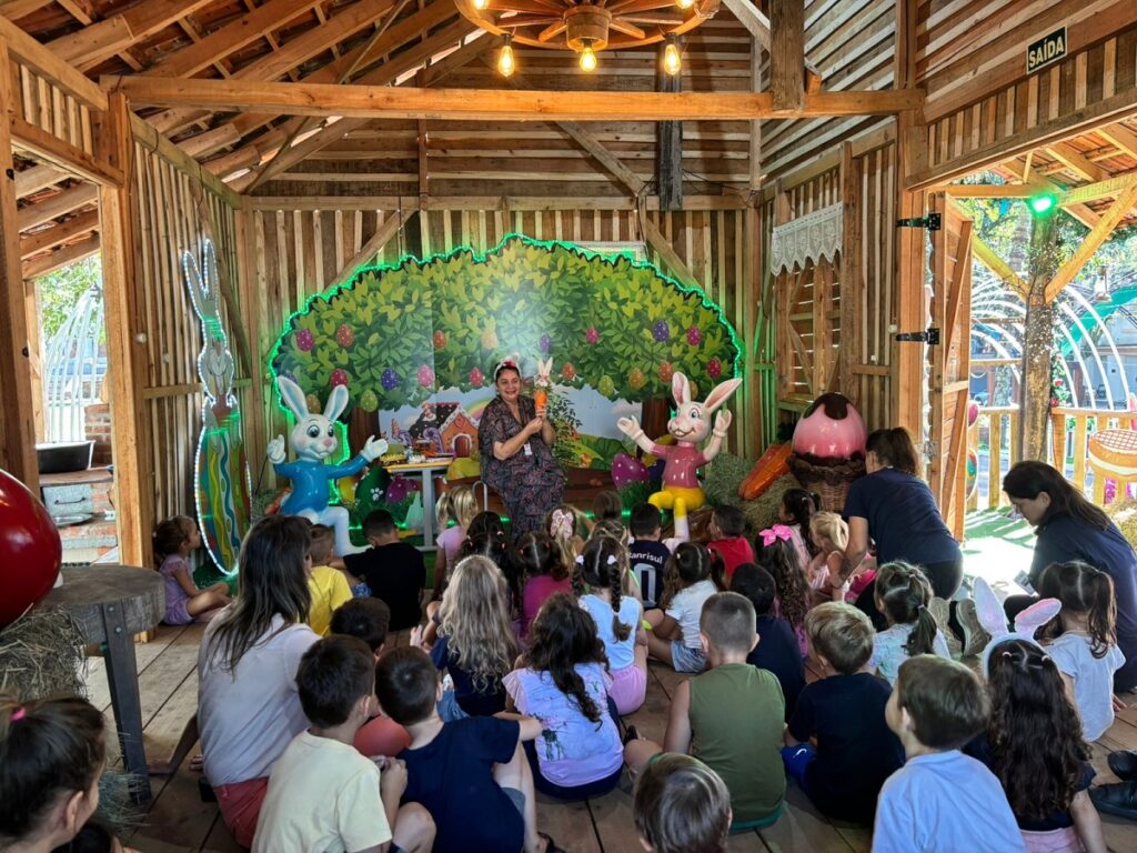 Programação da 1ª Osterfest de Santa Cruz do Sul continua hoje. Durante a manhã, mais de 40 crianças das EMEIs Pingo de Gente e Bem-me-Quer participaram de diversas atividades. Com todos já pintados de coelhinhos, os estudantes ouviram atentamente a contação de histórias da subsecretária de Cultura e Economia Criativa (Secult), Zoraia Pereira. Intitulado “O doce maior da Páscoa é o amor”, o conto deixa os chocolates de lado para falar sobre gentileza, respeito, generosidade, além de relembrar como a família e os amigos são importantes e devem ser tratados da melhor forma possível. Depois, a oficina “Dance como um coelho”, ministrada pelo professor de dança Fabrício Schaefer, da Secult, agitou os alunos com coreografias divertidas. A famosa “caça aos ovos” também não ficou de fora da programação, com todos recebendo a mesma quantidade de doces. As atividades foram acompanhadas pela secretária de Educação, Jane Sabin