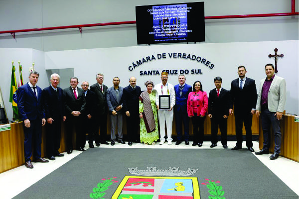A Câmara de Vereadores de Santa Cruz do Sul realizou nessa segunda-feira, 23, sessão solene para a entrega do título de Cidadão santa-cruzense a Antônio Rogério de Souza, o Pai Antônio. A sessão contou com a presença de pessoas ligadas ao homenageado, em especial, de sua obra religiosa e social.