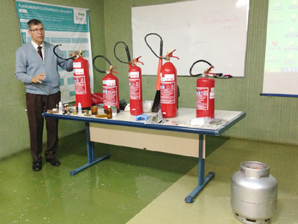 Além de um breve histórico sobre o surgimento do corpo de bombeiros e de como focos de incêndio eram combatidos em outras épocas, o Cel. da Brigada Militar, Sérgio Pastl, fez demonstrações de que forma alguns objetos podem incendiar, deu dicas para reter a marcha do fogo, dos cuidados que se deve ter tanto dentro de um ambiente hospitalar quanto dentro de casa, o uso correto de um extintor e lembrou que manter a calma é uma das principais ferramentas.