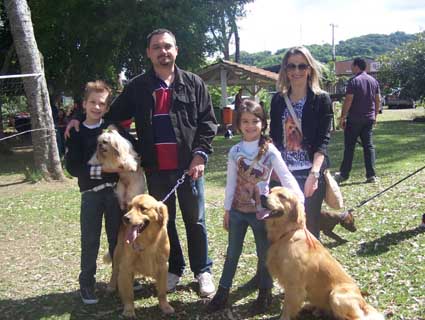 Daniela Fagundes Kunde veio com o marido Tiago e os filhos Ana Luiza e Matheus para o parque trazendo três, dos oito bichos de estimação que tem em casa. “Participo da Bênção dos Animais desde a primeira edição, como sou apaixonada por bichos não deixo de participar e dar importância pela ação! Para mim que tenho loucura por todos os animais em especial aos gatos e cachorros atualmente tenho seis cachorros e dois gatos. Os cachorros são encantadores é o único ser que consegue amar os outros mais do que a si próprio e estou realizando meu sonho que era ter muitos animais sempre, mas necessitava de espaço. Antes morava em apartamento onde não tinha como ter muitos e então arrumamos uma casa com um grande pátio. Estou realizada com meus oito filhos de quatro patas! Como diz a minha família na minha casa sempre tem espaço para mais um.”