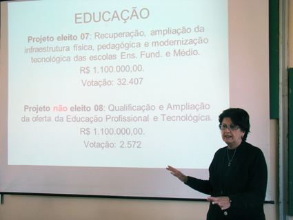 A votação da Participação Popular e Cidadã de 2012, ocorrida no dia 4 de julho em todo o Estado, demonstrou que a sociedade, mesmo com o pouco investimento dos governos nos últimos anos, prioriza e quer recursos para a área da educação. A apresentação dos resultados aconteceu na última quarta-feira, 11, na sala 108 da Universidade de Santa Cruz do Sul (Unisc), pelo Conselho Regional de Desenvolvimento do Vale do Rio Pardo (Corede/VRP). O projeto mais votado, com 32.407 votos, no valor de um milhão e cem mil reais, prevê a recuperação, ampliação da estrutura física, pedagógica e modernização tecnológica das escolas de Ensino Fundamental e Médio.