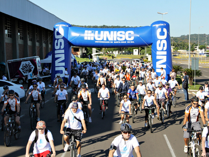 No último sábado, dia 20, a Unisc realizou, em Santa Cruz do Sul, um passeio ciclístico em comemoração aos 20 anos da universidade. A atividade reuniu cerca de 250 participantes. O ponto de partida foi a Unisc e os ciclistas percorreram a Avenida Independência, Rua São José, Rua Coronel Oscar Jost, Avenida do Imigrante e também a Rua Marechal Deodoro, chegando à Praça Getúlio Vargas.