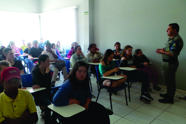 Destaca-se a palestra realizada na APAE (Associação de pais e amigos dos excepcionais), em Santa Cruz do Sul, na semana passada, onde foram abordados assuntos referentes à disciplina, respeito, uso de drogas, comportamento diante dos professores, através de valores e normas de socialização, cumprimento de normas escolares e convívio harmonioso com os colegas e educandários, com grande participação, esclarecimento de dúvidas com os alunos do educandário.