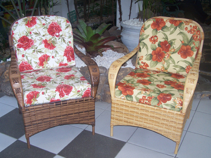 O floral combinado com o vime traz requinte para estas poltronas