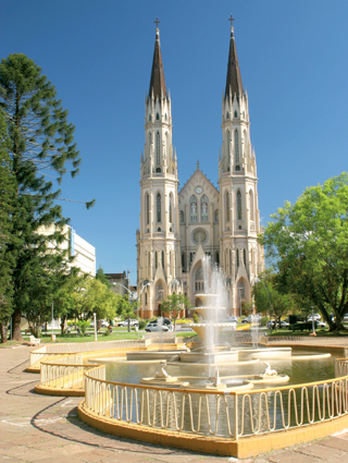 Catedral São João Batista – é um dos maiores templos da América do Sul em estilo neogótico tardio. Suas dimensões são: 80 metros de comprimento, 38 metros de largura, 26 metros de altura na nave central, e suas torres alcançam 82 metros. O projeto é do arquiteto austríaco Simão Gramlich e sua construção deu-se entre os anos de 1928 e 1976. Situa-se na Rua Ramiro Barcelos, em frente à Praça Getúlio Vargas, no centro da cidade. Fonte: www.ferias.tur.br