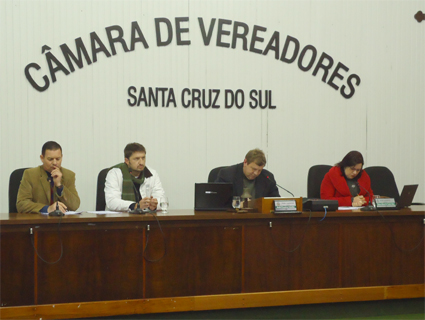 A Câmara de Vereadores de Santa Cruz do Sul promoveu nesta terça-feira, 24, uma reunião especial com o Conselho Pró-Segurança Pública (Consepro) e Secretaria Municipal de Transportes e Serviços Públicos para debater melhorias no estacionamento rotativo pago, conhecido como Rapidinho. Tramita na Casa o Projeto de Lei 143/L/2013, de autoria do Executivo, que estabelece alterações no sistema. Entre as mudanças previstas no texto está a eliminação do selo mensal e o fim do perdão da multa. O projeto já recebeu manifestações positivas de diversos vereadores e deve ir a votação na próxima semana.