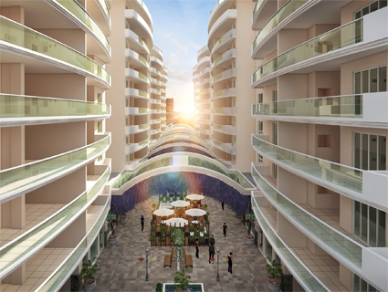O residencial será circundado por um shopping a céu aberto, com um mix