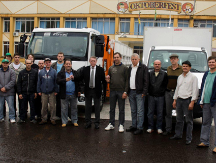 A Prefeitura de Santa Cruz do Sul, através da Secretaria Municipal de Agricultura, realizou a cedência de dois caminhões para a Cooperativa Mista dos Fumicultores do Brasil e para a Cooperativa Regional de Alimentos de Santa Cruz Ltda. Na manhã desta sexta-feira, 6, o prefeito Telmo Kirst assinou o termo de cessão de uso dos veículos, que foram entregues aos representantes das cooperativas no Parque da Oktoberfest. Participaram do ato o secretário municipal de Agricultura, Zeno Assmann; presidente da Coopersanta, Sérgio Luiz Reis; presidente da Cooperfumos, Gilberto Tuhtenhagen; e produtores cooperados.