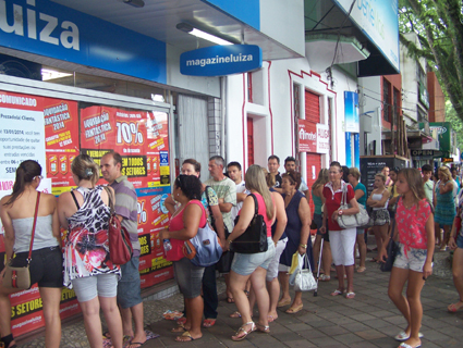 Logo após o meio-dia, ainda na véspera do dia da Liquidação Fantástica, já havia consumidores na fila esperando pela abertura das portas do Magazine Luiza. E na sexta-feira, às 13h, faltando uma hora para o término da promoção, a fila continuava. O atendimento era feito com a entrada de três em três pessoas.