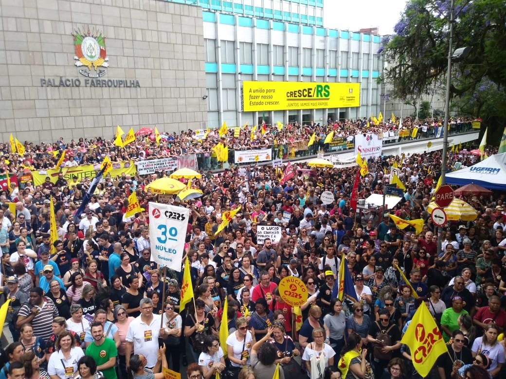 Na tarde desta terça-feira, dia 26, aconteceu uma das maiores Assembleias do CPERS/Sindicato, na Praça da Matriz, em Porto Alegre. Cerca de 15 mil educadores participaram da manifestação, mostrando o seu repúdio ao pacote do governador Eduardo Leite.