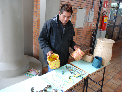 Por essa razão, os indígenas foram até a Unisc participar do grupo de estudo e disponibilizar seu artesanato. “A convivência com os indígenas aqui em Santa Cruz está sendo uma experiência muito rica pelas trocas e aprendizagens desse encontro intercultural de forma natural fora da Aldeia” completou Raquel. Para o indígena Alex Costa, de 33 anos, Santa Cruz sempre foi o ponto principal para vinda da sua Aldeia. “Trazemos pra cá os artesanatos para vender. O pessoal vem para Santa Cruz que é a cidade que mais nos favorece em vendas, até por ser uma cidade grande e perto da nossa Aldeia. Aqui, a Prefeitura libera uma casa pra nós e podemos ficar por algumas semanas” revela o indígena.