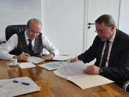 O diretor-presidente da Corsan (Companhia Riograndense de Saneamento), Flávio Ferreira Presser, assinou com o prefeito de Santa Cruz do Sul, Telmo Kirst, na tarde de ontem (21), convênios para cessão de aproveitamento ambiental sustentável do Lago Dourado para o município. Os documentos, assinados na sede da Corsan, permitirão à Prefeitura realizar, com recursos aportados pela Corsan na ordem total de R$ 20 milhões, melhorias na utilização do área do lago como parque de lazer, inclusive para a prática de esportes náuticos não motorizados.