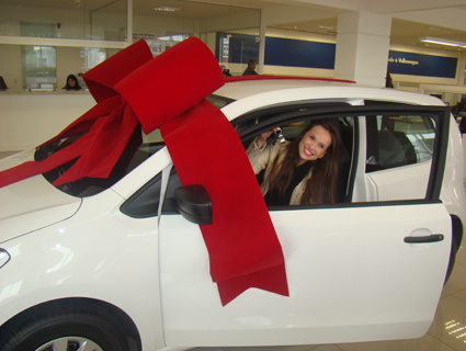 Na tarde da última segunda-feira, 6, Djulia Marcy Simon recebeu o carro Volkswagen UP! que ganhou quando foi coroada como Rainha da 31ª Oktoberfest. A entrega foi feita na própria concessionária Spengler, onde o diretor Claudio Spengler entregou a chave do carro em mãos para a líder das soberanas, junto com o presidente da Associação de Entidades Empresariais (Assemp) Flávio Bender e o presidente da 31ª Oktboerfest Léo Schwingel.