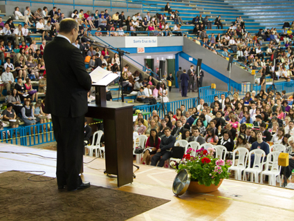 Formatura na Assembléia de Deus – No dia 6 de abril a Igreja Evangélica Assembléia de Deus (AD) da região eclesiástica de Santa Cruz do Sul, presidida pelo pastor Neemias da Silva, realizou em seu templo matriz o Culto de Celebração da Formatura dos alunos do curso em teologia da Escola de Educação Teológica Corbã, com sede em Passo Fundo, sob a direção do mestre em teologia pastor João Maria Hermel. No total 55 alunos formaram-se no Curso de Teologia por Extensão.
