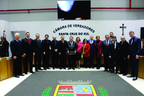 A Câmara de Vereadores de Santa Cruz do Sul realizou nesta segunda-feira, dia 6, uma sessão solene para a entrega do título de Cidadão Santa-cruzense a Roberto Jeferson Gross. A iniciativa foi do vereador André Francisco Scheibler (SD).