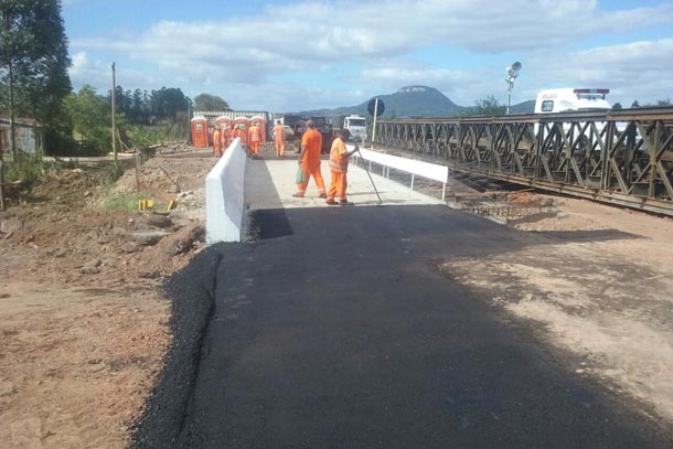 Após a liberação da primeira metade, a segunda etapa inicia com a execução das fundações. A expectativa é concluir a obra e liberar o tráfego no segundo lado no início de junho. O trecho havia sido interrompido, por motivos de segurança, após ser constatada a desestabilização das galerias. A ponte móvel foi instalada pelo 3º Batalhão de Engenharia de Combate, de Cachoeira do Sul, com os custos de logística da operação arcados pela EGR.