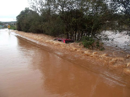 O grande volume proveniente da chuva causou inúmeros transtornos em diversas localidades do interior de Santa Cruz do Sul. Renato Alegre, a esposa Janaína e a filha Sophia estavam na localidade de Albardão, na divisa com o município de Vera Cruz, participando de uma Festa Junina na noite de sexta-feira, 27, no CTG Coxilha Verde. “Fomos para Albardão na noite de sexta-feira, retornamos no sábado pela manhã. Às 10h30 da manhã de domingo voltamos para a localidade e após o meio-dia não conseguimos mais passar pelo acesso de Vera Cruz. Estava tudo alagado, com cerca de um metro de água no asfalto.” Renato, que reside em Vera Cruz, explica que os acessos para Albardão são por Rio Pardo no qual há uma ponte caída desde a última enchente a cerca de 7 meses; via Vera Cruz ou por Candelária. “Com a enchente só conseguimos retornar através de Candelária, inclusive a empresa Souza Cruz que busca funcionários em Albardão está utilizando este trajeto.”