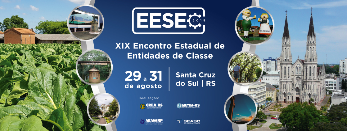 Promovido pelo Conselho Regional de Engenharia e Agronomia do Rio Grande do Sul (CREA-RS), em conjunto com o Colégio de Entidades Regionais do Rio Grande do Sul (CDER-RS), a Associação dos Engenheiros Agrônomos do Vale do Rio Pardo (AEAVARP) e a Sociedade dos Engenheiros e Arquitetos de Santa Cruz do Sul (SEASC), o XIX Encontro Estadual de Entidades de Classe (EESEC) ocorre de 29 a 31 de agosto, no auditório Central da Unisc, em Santa Cruz do Sul.