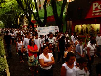 A caminhada contou com cerca de mil pessoas que, vestindo preto e branco, carregavam, em silêncio, cartazes com frases de carinho e saudade, e flores. A passeata saiu da frente da Catedral São João Batista e foi até o Parque da Oktoberfest.