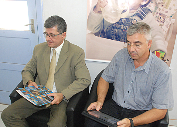 Ricardo Machado, diretor estadual de operações da Corsan, e Rogério Medeiros, chefe da unidade local, mostrando alguns dos resultados da força-tarefa