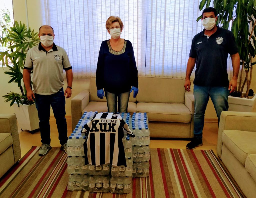 A direção do Futebol Clube Santa Cruz realizou na tarde desta segunda, 20, a doação de 31 fardos de água mineral Cristal da Terra, em parceria com a Xuk Bebidas, patrocinador oficial do clube. A entrega foi realizada no Gabinete da Vice-Prefeita Helena Hermany, que é conselheira do clube carijó pelos diretores Lairton Falcão dos Reis e Sérgio Lima, o Serginho. “Agradecemos muito pela doação e faremos o repasse ao Hospital Santa Cruz que necessita muito de água para os pacientes e para a própria equipe de funcionários”, afirmou a vice-prefeita. Devido ao risco de contagio do coronavírus, os bebedouros da casa de saúde não estão sendo utilizados.
