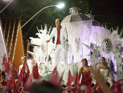 No final do desfile, o homenageado, com roupas nos tons branco e vermelho, era só alegria. Junto com Paulo Brito, a família dividia a emoção, o pai Paulo Brito Beckenkamp e as irmãs Valderez e Vanise.