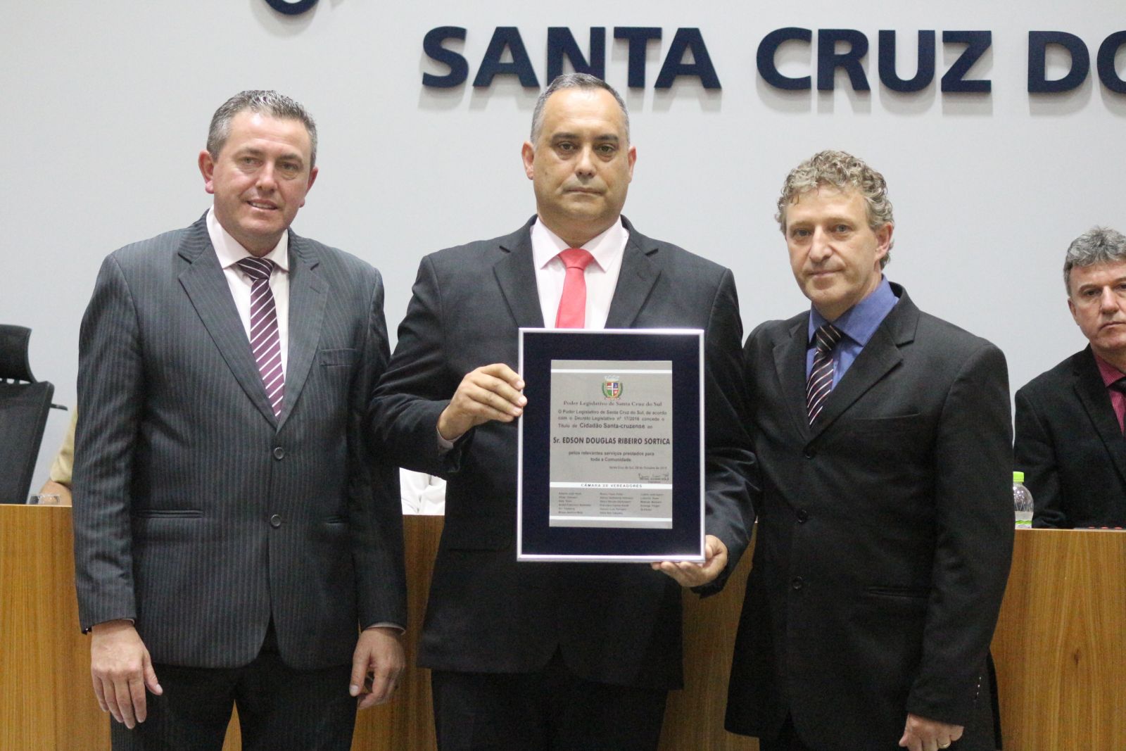 A Câmara de Vereadores de santa Cruz do Sul realizou sessão solene para a entrega do título de Cidadão Santacruzense ao Sargento Sortica, e do Mérito Desportivo aos ciclistas do Santa Cruz Biker’s Clube – Grupo Santa Ciclismo, e aos ciclistas Giovane Faccin, Miguel Pedro Lawisch e Douglas Faccin. A iniciativa foi do vereador Alberto João Heck (PT).