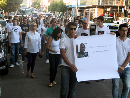 Os participantes da mobilização vestiram roupas brancas. Segundo Iama, a intenção também foi homenagear todos os jovens que faleceram na boate Kiss. “Nossa homenagem foi para todas as vítimas, mas em especial para a Julia, que era uma pessoa muito querida e bem quista por todos”, salienta.