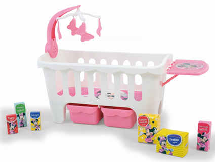 O Berço Minnie Bow-tique Disney foi desenvolvido com design diferenciado, detalhes na cor rosa e porta-trecos na parte inferior. Seu móbile de borboletas possui som de uma linda canção de ninar para embalar o sono das bonecas, acompanha também uma bancada auxiliar, tudo devidamente personalizado pela Minnie. Indicado para crianças acima dos 3 anos de idade.