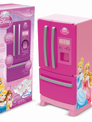 Uma linha diferenciada para crianças modernas, com design inovador side by side e decoração das princesas. Moderno e super resistente, o refrigerador possui corpo estruturado em peça única. Possui luz de led interna, dispenser de latinhas, som, cubinhos que imitam gelo e compartimento para abastecimento de água de verdade. Acompanham 16 acessórios. Recomendado para crianças acima dos 3 anos de idade.