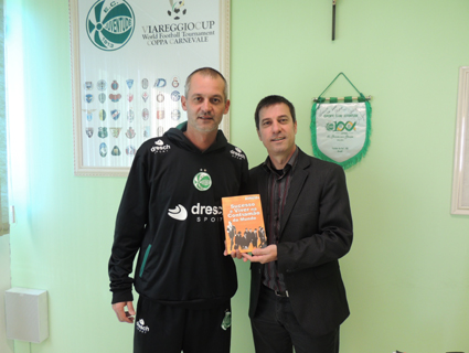 Treinador do Juventude, Lisca, e Sérgio da Silva Almeida com o livro do palestrante “Sucesso é Viver na Contramão do Mundo”