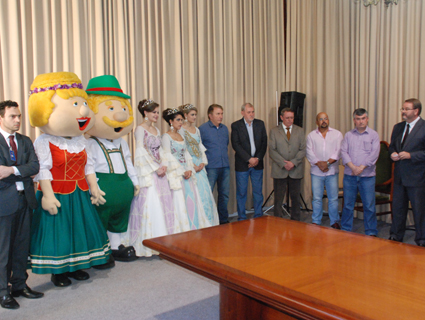 Outra novidade em comemoração às três décadas da Festa da Alegria é o lançamento dos selos comemorativos realizado ontem no Palacinho. Com tiragem de 1,2 mil unidades, o material será comercializado em folhas na sede Associação de Entidades Empresariais (Assemp) – Rua Guilherme Hackbart, 109, no centro. Ao todo, três modelos foram desenvolvidos para valorizar e divulgar o Jubileu de Pérola da Oktoberfest: um deles retrata os bonecos símbolos da festa – Fritz e Frida -, outro mostra as soberanas da 30ª Oktoberfest e terceiro ilustra a logomarca da trigésima edição do evento. (Com informações da Four Comunicação)