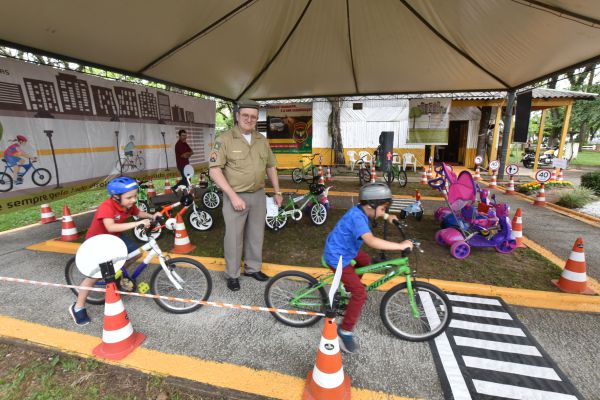 BRIGADA – O Comando Rodoviário da Brigada Militar também tem espaço na 34ª Oktoberfest. Próximo à Feira de Agroindústrias, o CRBM montou uma escolinha de trânsito. O circuito conta com semáforos e faixas de segurança e está à disposição de crianças entre seis a 14 anos de idade. Elas podem utilizar monociclos, biciclos e triciclos para completar o percurso e receber uma carteira de habilitação mirim. O comando também distribui folhetos de conscientização e dá dicas de segurança no trânsito. Há ainda exposição de carros e motos antigos da polícia.