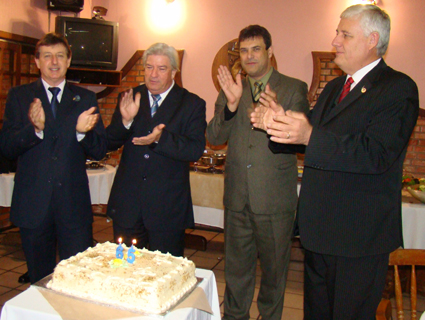 Mário Kist, Adilo Rehbein, Sergio Luiz Rossetto e Sérgio Gilberto Dienstmann na hora do Parabéns