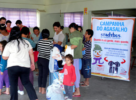 A campanha do agasalho “Quanto mais gente, mais quente!“ da Stadtbus Transportes em parceria com a Associação Santa-cruzense de Futsal (Assaf) foi considerada um sucesso. Além de usuários do transporte coletivo e torcedores do clube de futsal, a comunidade de forma geral, também deu a sua contribuição em mais esta ação social.