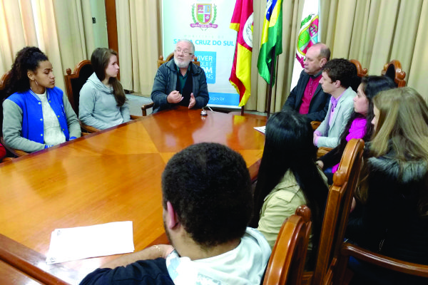 “Uma comitiva formada por representantes do Sindicato dos Comerciários de Santa Cruz do Sul e Região, União dos Estudantes Santa-Cruzenses (UESC), CSP Conlutas e Movimento de Mulheres em Luta (MML) de Santa Cruz do Sul foi recebida no Palacinho, na manhã desta quarta-feira, dia 20, pelos secretários municipais de Comunicação, Régis de Oliveira Júnior, de Transportes e Serviços Urbanos, Gérson Vargas, e pelo chefe de Gabinete, Délsio Meyer. Eles entregaram ao governo municipal um documento, no qual pedem a redução da tarifa do transporte coletivo e também a extinção da Agência Reguladora de Serviços Públicos (Agerst).