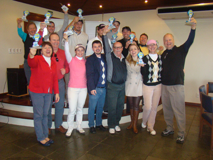 No último sábado, 25, foi realizada a 15ª edição do “Torneio Quebra Gelo” no Country Club. O nome curioso deve-se ao fato de que os jogadores de handicap alto jogam sempre pela manhã. Quanto maior o número de jogadores, mais cedo começa a competição. No inverno o campo está molhado, neblina, frio e, por vezes, gelo. Os jogadores das primeiras turmas da manhã são chamados de “quebra-gelo’’. Nos anos 90, no Santa Cruz Country Club, alguns desses atletas, madrugadores e quebra-gelos resolveram fazer um torneio para eles. Eles começariam a jogar às 10 horas da manhã, já sob influência do sol, sem gelo e assim foi realizado o 1º Torneio Quebra-Gelo.