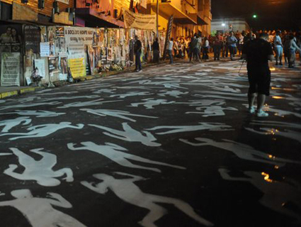 Chão em frente ao local foi pintado com 242 silhuetas, simbolizando os corpos das vítimas