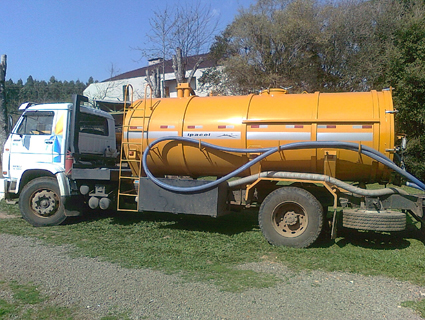 Caminhão tanque à vácuo é utilizado para o transporte dos resíduos