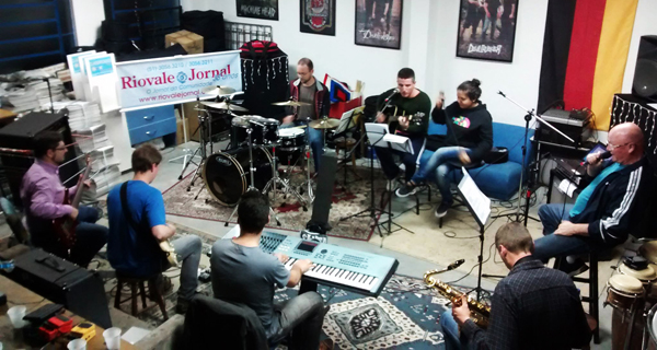 Uli Assmann canta e toca bateria e violão na banda Os Al Kimistas