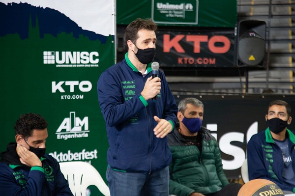 Diretor de basquete Diego Puntel pede apoio dos empresários para viabilizar participação da equipe no Novo Basquete Brasil (NBB) em 2022 – Crédito: Rolf Steinhaus / Riovale Jornal